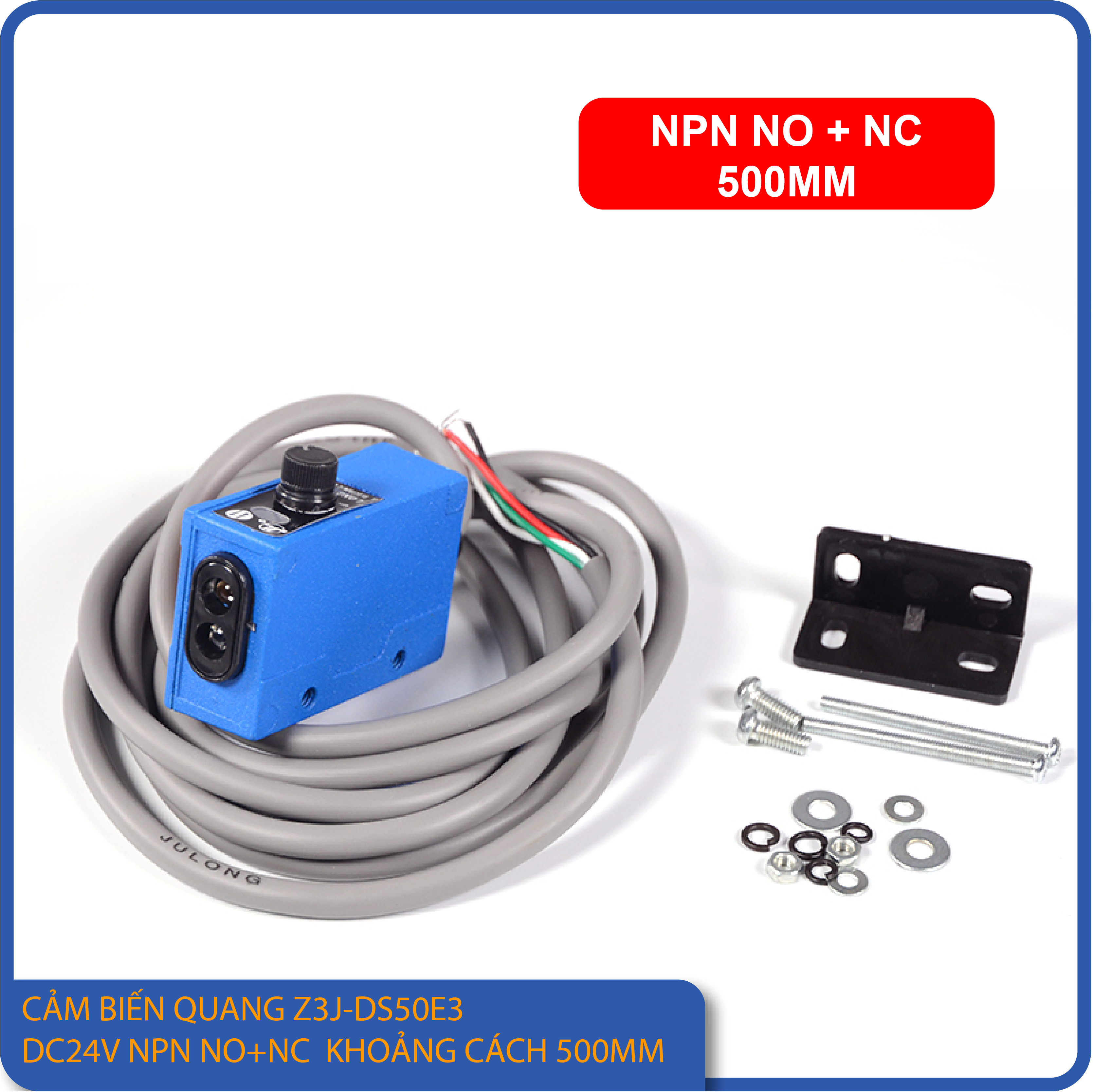 Z3J-DS50E3 là dòng cảm biến quang khuếch tán (Diffuse Reflective) do Julong sản xuất, được thiết kế để phát hiện vật thể ở khoảng cách tối đa 50 cm mà không cần gương phản xạ.