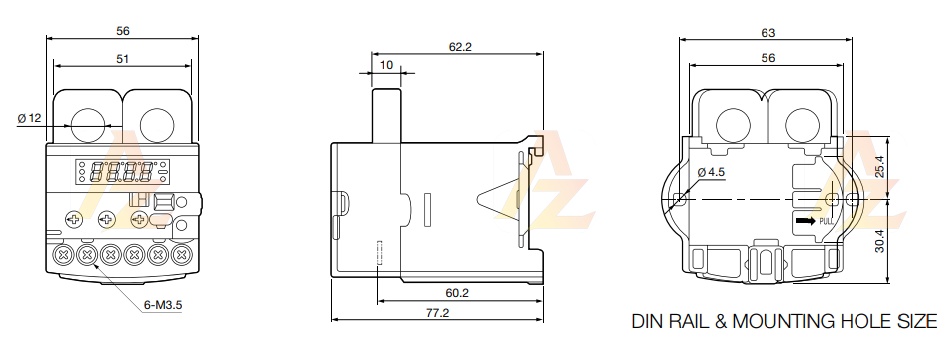 - Dải điều khiển 0.5 ~ 60A và có thể nâng lên 800A với biến dòng lắp ngoài