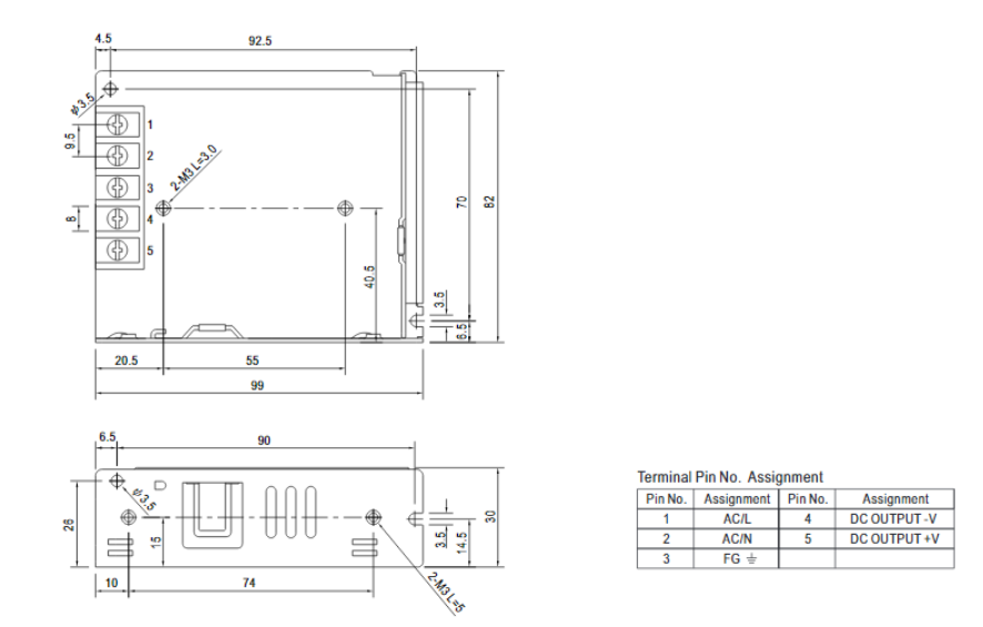 Bản vẽ kỹ thuật nguồn DC LRS50-24 Meanwell.