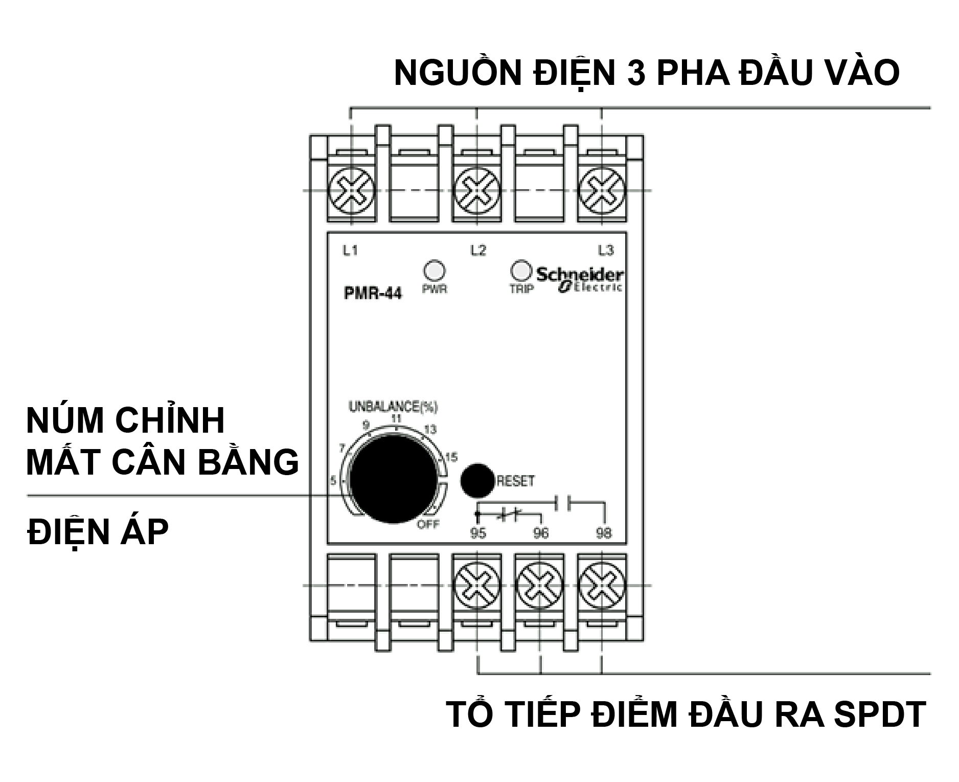 Reset bằng tay (nút Reset trên mặt PMR44) Reset tự động - sau 5S điện áp và Pha đầu vào ổn định |